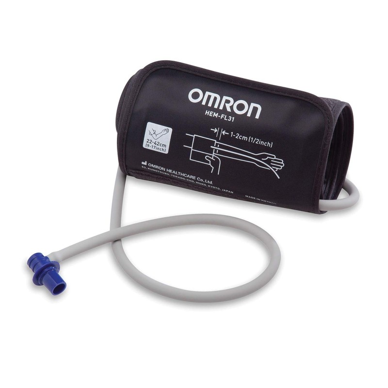 This pre-formed, expanded coverage OMRON Easy-Wrap ComFit blood pressure cuff inflates around the entire upper arm to fit both standard- and large-sized arms from 9 to 17 in circumference.