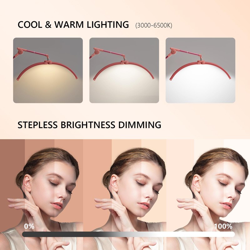 - CONVENIENT ADJUSTMENT: Dual swing arms allow for 360° flexible angle positioning and height adjustment. With touch control buttons on the bracket, you can easily fine-tune brightness and color temperature to match your environment and skin tone needs.