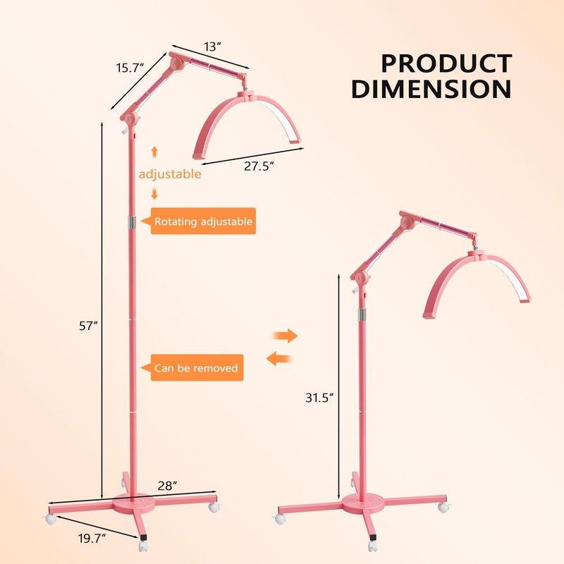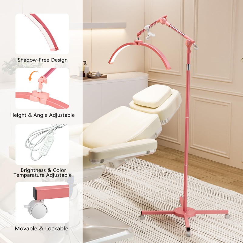 OmySalon Half Moon Light Lash Lamp, Shadowless LED Floor Lamp w/Adjustable Height & Phone Holder, Dimmable Lighting for Eyelash Extensions, Lash Tech, Nail Artist, Tattoo, Esthetician & Salon (Pink)