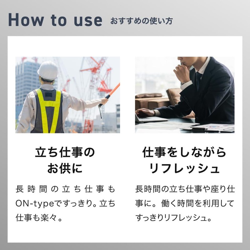- 段階的着圧:足首に最も圧力をかけ、徐々に減圧する設計。足をしっかり包みこみリフレッシュ。