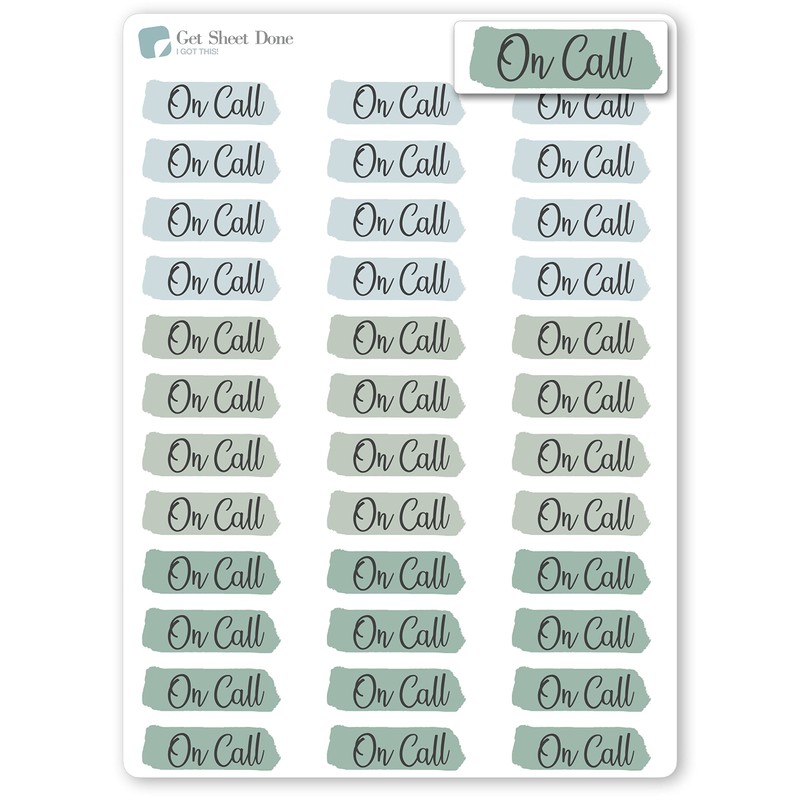 On Call Planner Stickers / 36 Vinyl Stickers (approx 1”) / Highlighted Text Script/Work Life
