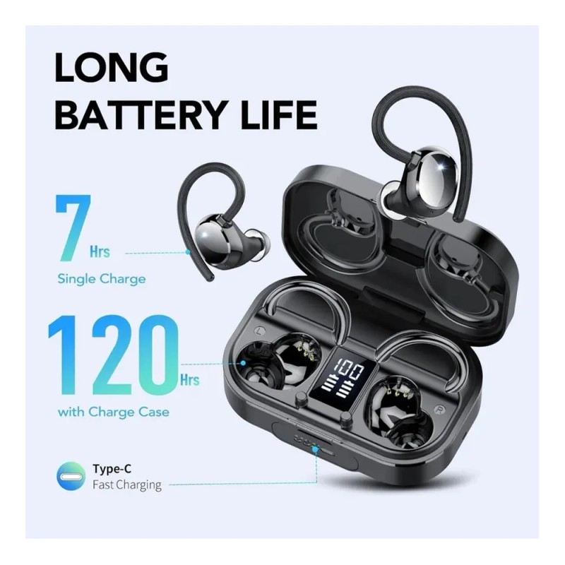 120 h de reproducción y pantalla digital: los auriculares inalámbricos se pueden utilizar normalmente durante 7 horas después de una carga completa, con una funda de carga para disfrutar de 120 h de reproducción.