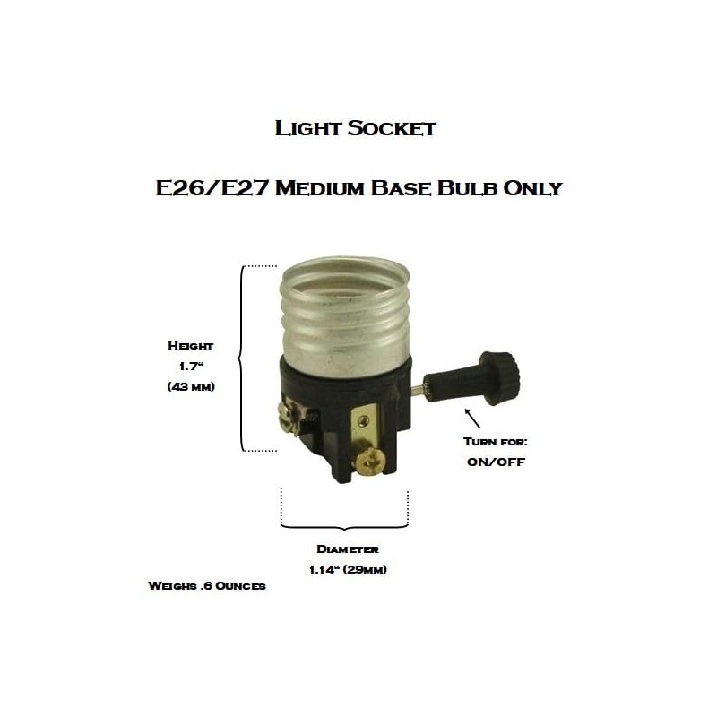 On/Off Med. Base E26 Socket Interior with Short Mandrel, Lamp Socket Replacem...