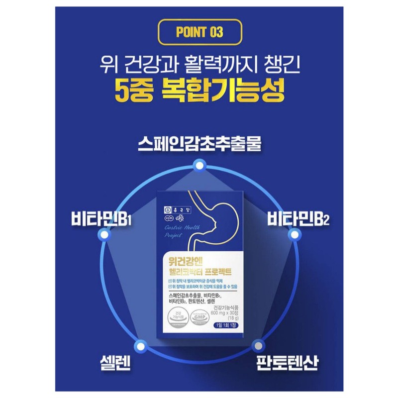 [On Sale] Chong Kun Dang Health Stomach Health Helicobacter 30 tablets x 12 boxes (12 months) 5-layer complex functional combination Helps stomach health and energy recharge / [온세일]종근당건강 위건강엔 헬리코박터 30정x12박스(12개월) 5중 복합기능성 배합 위건강 및 에너지 충전에도움