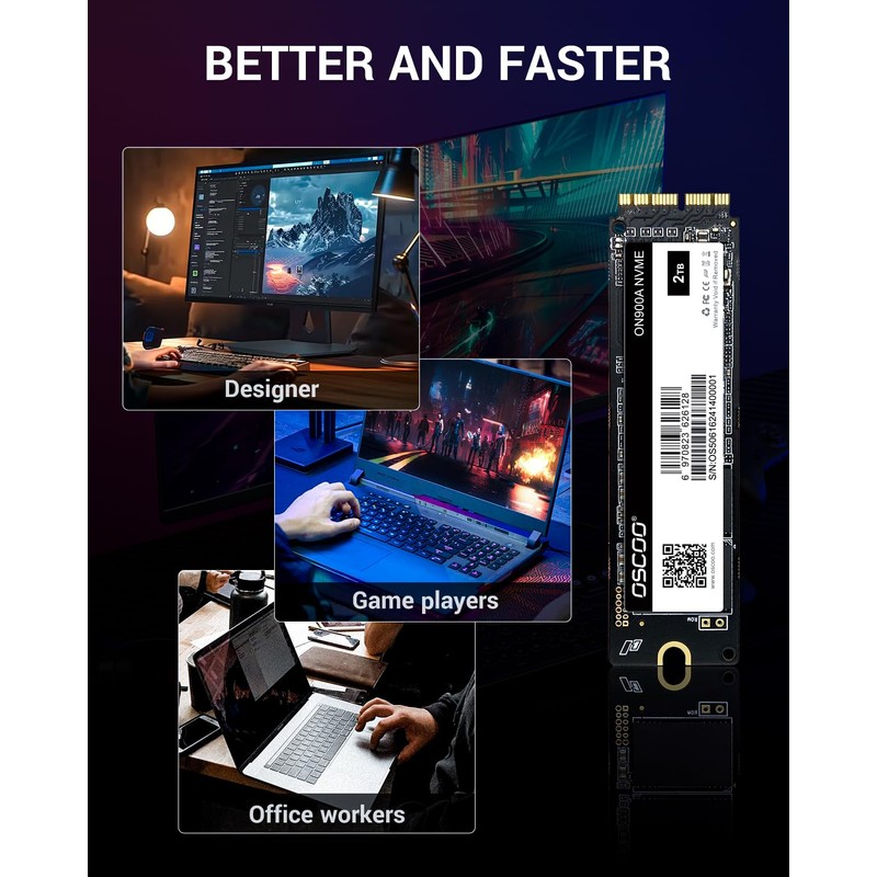 - Expandable Storage Options: Available in 256GB, 512GB, 1TB, and 2TB capacities, the ON900A gives you flexible storage to accommodate work files, multimedia content, and creative projects. This SSD boosts your Mac’s storage without sacrificing speed.