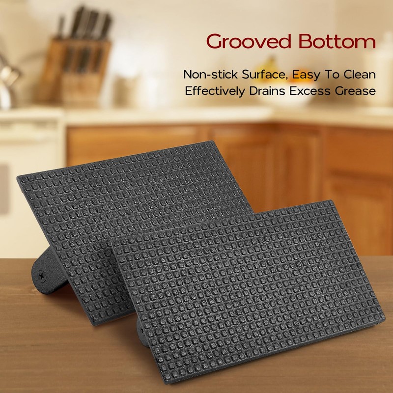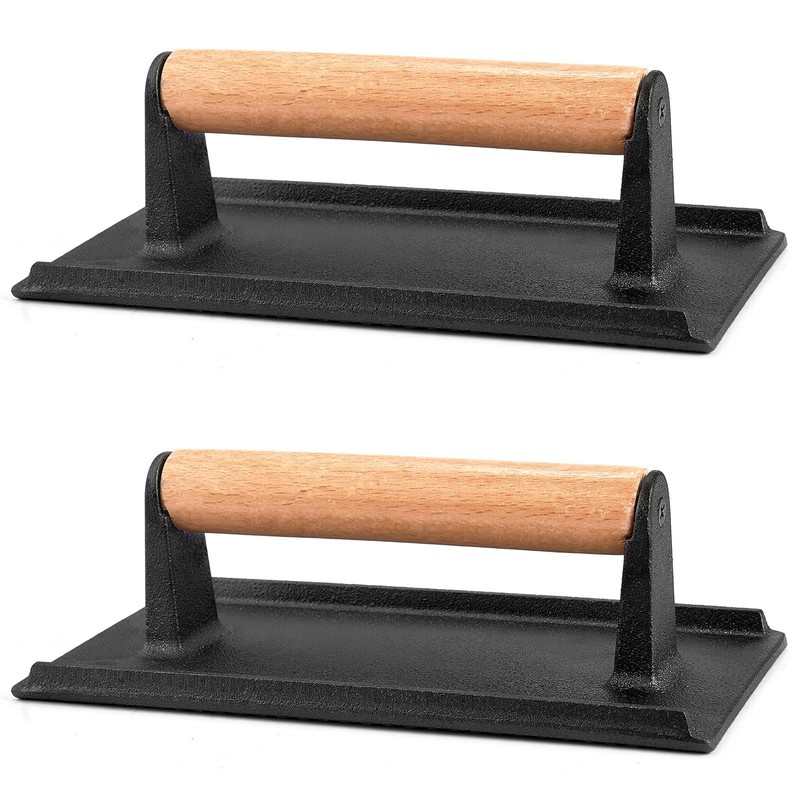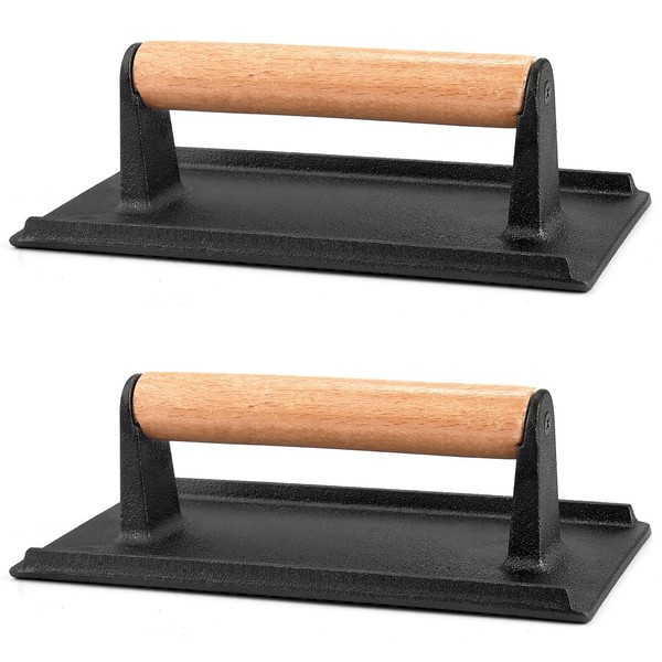 Onader 8⅜ Inch Rectangle Smash Burger Press Cast Iron Grill Bacon Press Set of 2