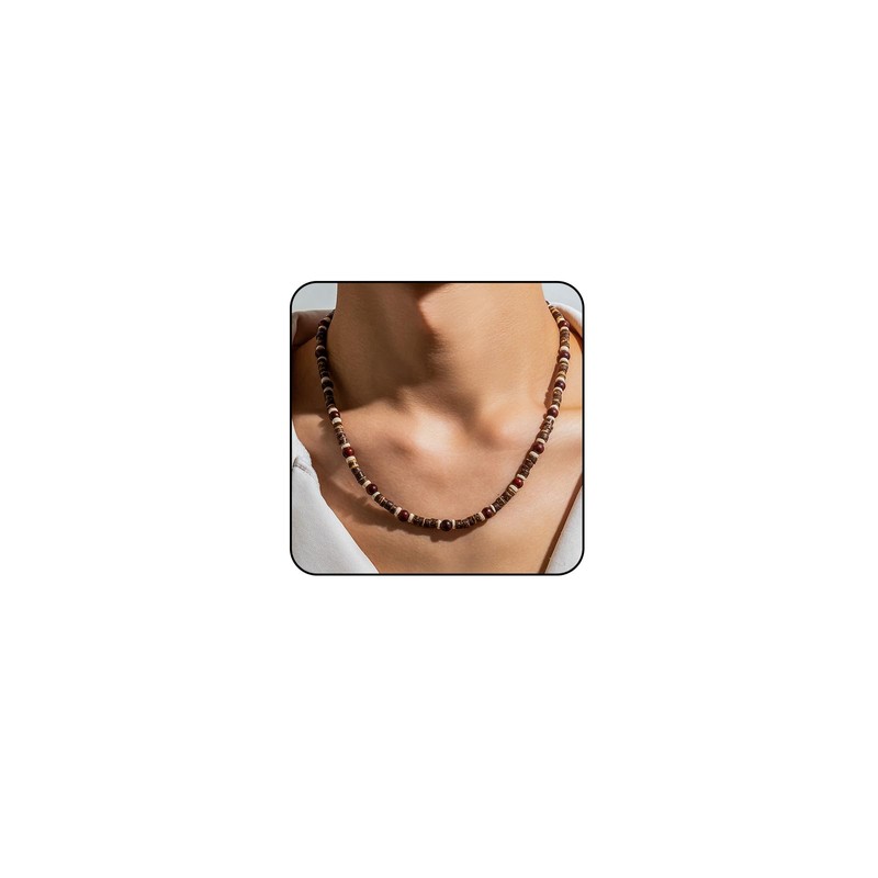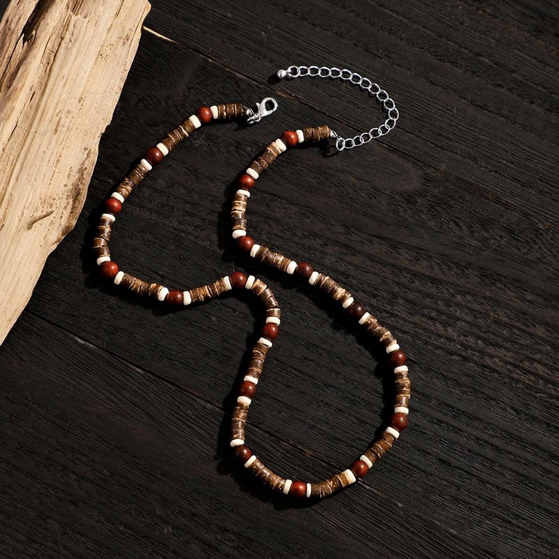 ONBRIG Puka Shell Necklace Mens Surfer Necklace Wooden Beaded Necklaces for Men Coconut Shell Necklace Beach Necklace Hawaiian Summer Necklace Beach Jewelry (1-B-Mix), Brown,White