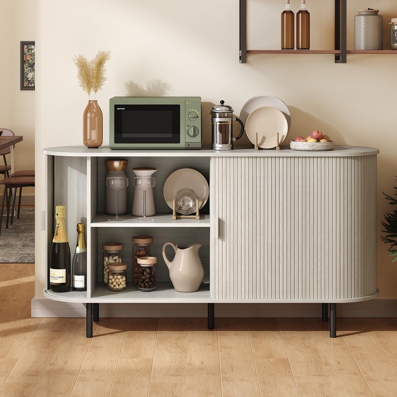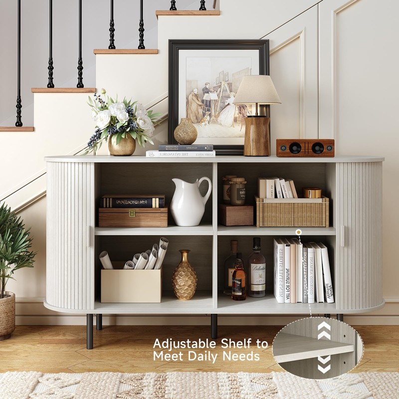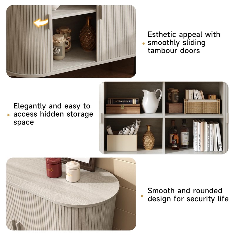 - SPECIALLY DESIGNED: This Sideboard Buffet Cabinet is specially designed with curved edges, making it a perfect accent sideboard. The standard sliding groove track enables effortless gliding for sliding doors. This special and innovative storage cabinet is designed to be compact and provide enough storage.