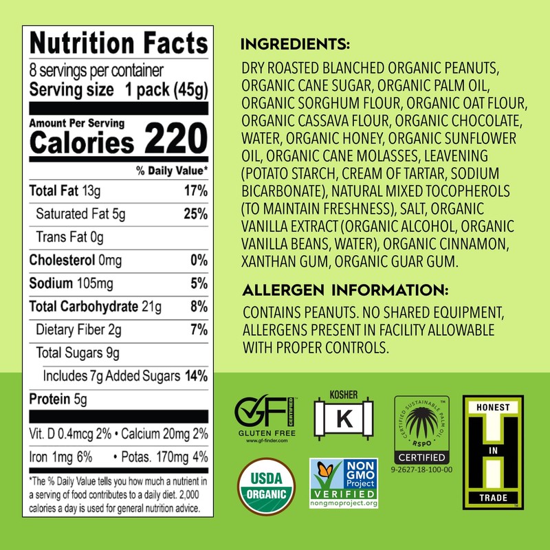 - DELICIOUS SANDWICH CRACKERS: An indulgent yet not-too-sweet treat bursting with our organic dark chocolate and peanut butter filling between two gluten free graham crackers. Our chocolate peanut butter snacks take sandwich crackers to the next level, like a new take on peanut butter cookies.