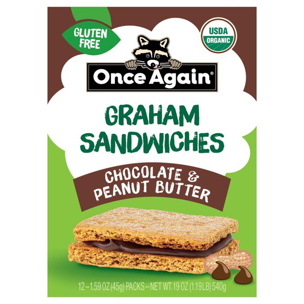 Once Again Chocolate Peanut Butter Crackers Graham Sandwiches - Gluten Free Snacks for Kids & Adults - Organic Sandwich Crackers with Chocolate Peanut Butter Filling - Dairy Free School Snacks, 12 Ct