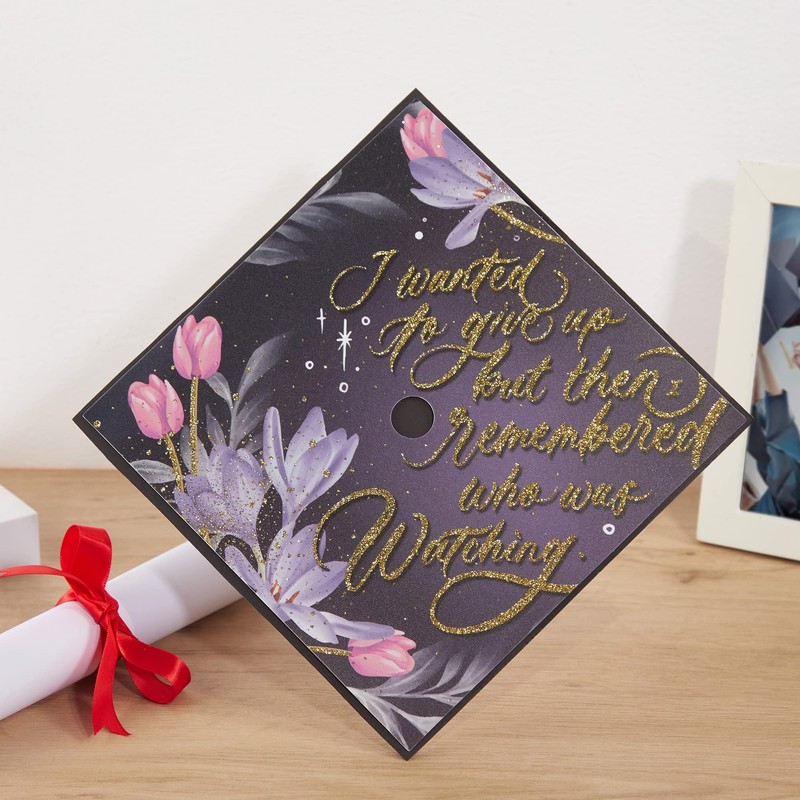 - Expertly Handcrafted: Each unique graduation cap topper is made using UV HD Printing on fine PVC boards for a stunning appearance. Our team hand-applies golden powder, adding a brilliant, shimmering effect to each piece.