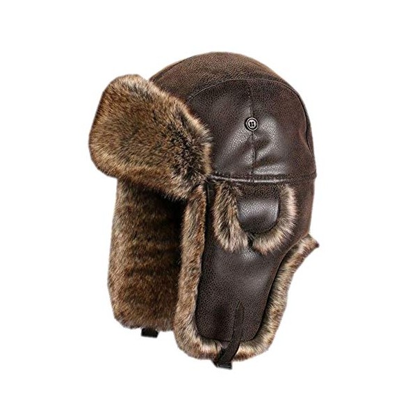 Oncefirst Unisex Aviator Hat Faux Leather Pilot Cap Winter Trapper Hunting Hat Brown XL