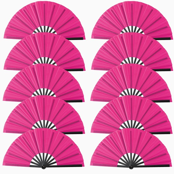 Oncpcare 10 Pcs Boots on The Ground Hand Fan Bulk, Folding Popping Clacking Fans for Line Dancing (Rose Red)