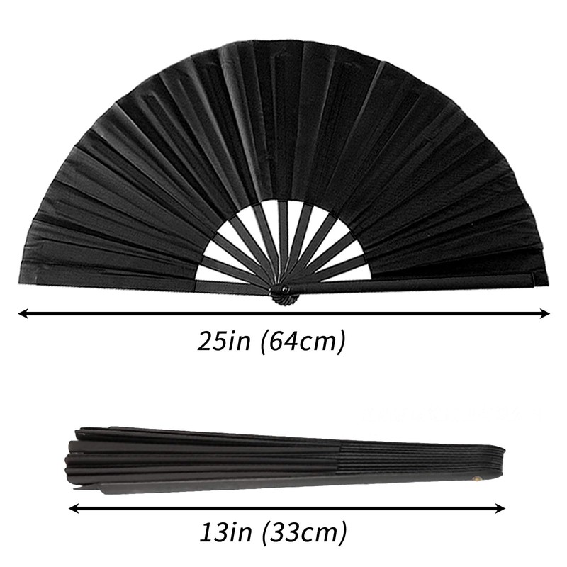 - PORTABLE DESIGN: This is a large folding fan, its closed length is approx. 13 inches (33 cm), and open length is about 25 inches(63cm), whether it's for cooling down or for stage performance, it's going to be pretty