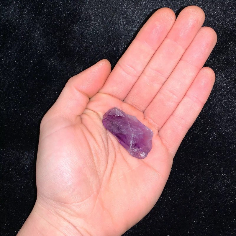 You will not receive the exact stone in my hand.  You will receive one that is of similar size and quality.  We are able to offer you this great deal because we have purchased several hundred pounds of genuine natural Amethyst rough direct from Arizona. Amethyst is a natural stress reliever that also encourages inner strength, spirituality and intuition. It attracts positive energy while ridding the body or your home of negative energy. Order two (2) rocks and you will receive two (2) FREE Selenite Recharging sticks.