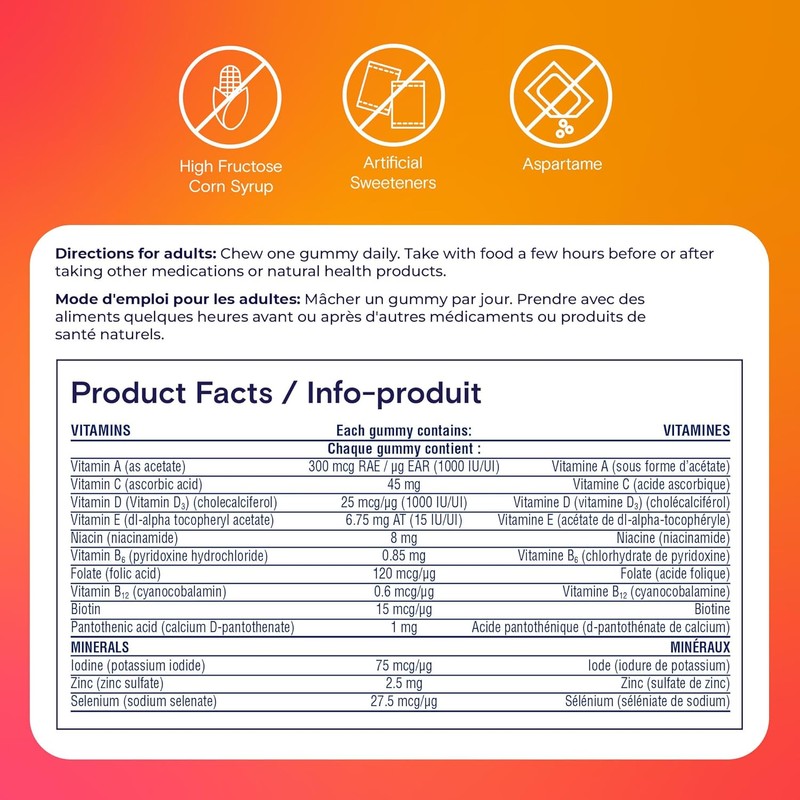 • Quality Ingredients - Formulated with the good stuff you want and free of stuff you don't. These adult immunity gummy multivitamins are free of high fructose corn syrup, aspartame, and artificial sweeteners.