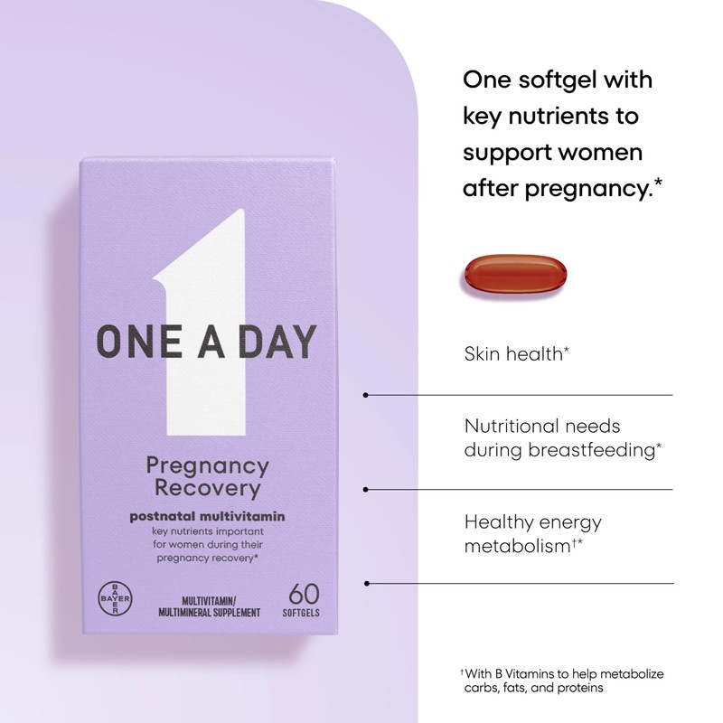 ONE A DAY Postnatal Complete Multivitamin for Post-Pregnancy with Folic Acid and Omega-3 DHA, 60 Count (Packaging May Vary)