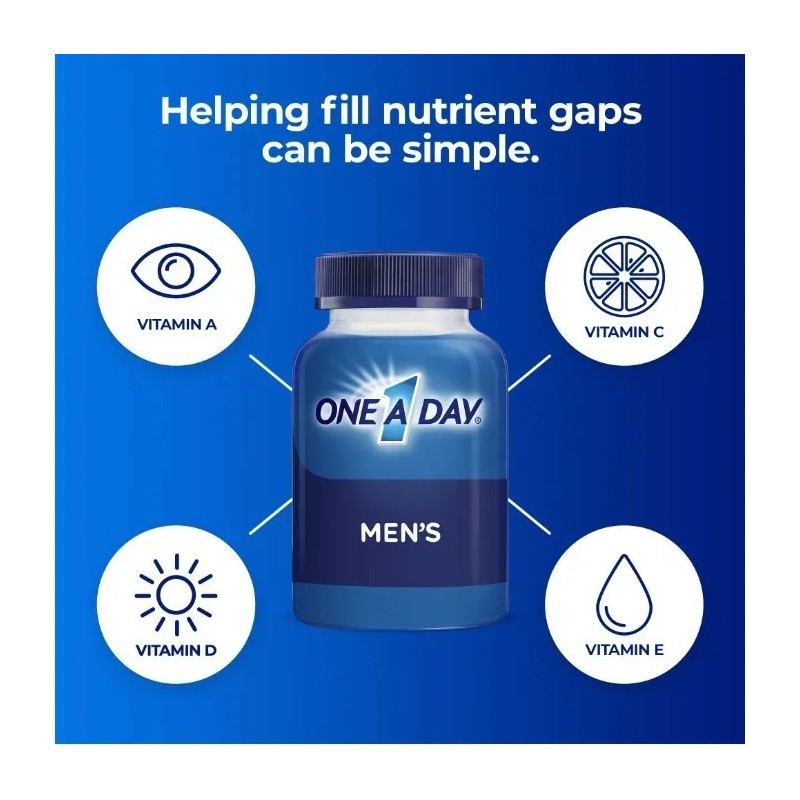Con más de 75 años de experiencia, Bayer® te ofrece una fórmula multivitamínica de confianza que aborda tus preocupaciones de salud más importantes. Vive cada momento al máximo con One A Day Vitaminas Premium Hombre y experimenta la diferencia de un cuidado completo y dedicado.