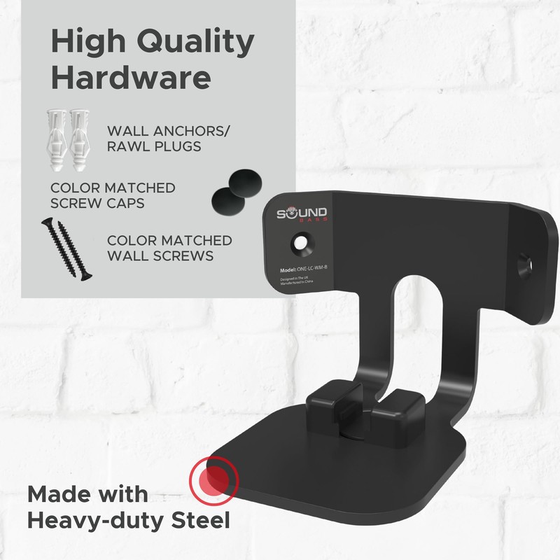 - ROBUST BUILD: Durability meets acoustic enhancement in this mount. Constructed from high-quality steel with a color-matched powder coat finish, it promises longevity and resilience. The design also focuses on improving sound dispersion and bass response, ensuring an immersive audio experience that complements the Sonos ONE's capabilities. The SINGLE pack includes ONE wall mount and hardware kit. Please note that the speaker is NOT included with the bracket.