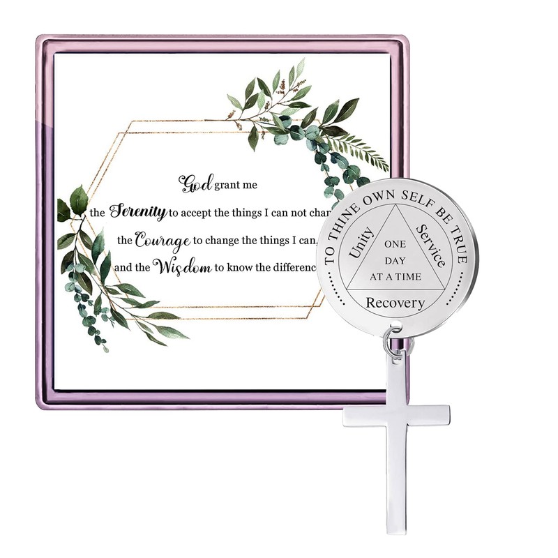 - Each cross sobriety coin comes in a high quality jewelry box and Serenity prayer card ready for gift giving.ARHTF provide lifetime after-sales service and 100% satisfaction for customers who purchase our one day at a time pocket token. If you have any questions about it, please feel free to contact us, we will deal with your problems in a short time, and you will get excellent customer service and satisfactory solutions.