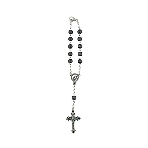 One Decade Auto Rosary for Rear View Mirror (Hematite)