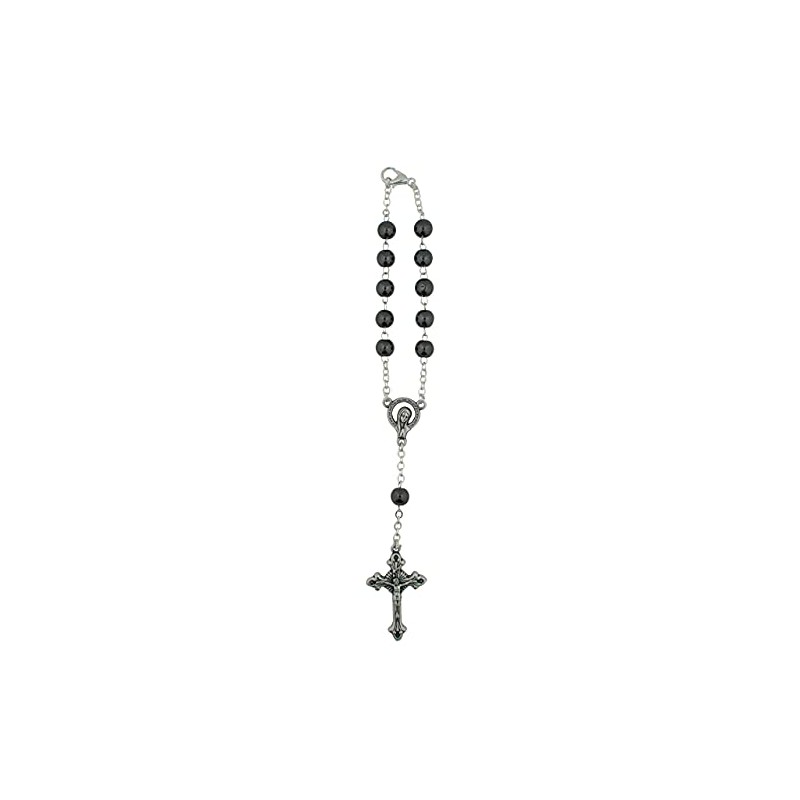 - BEAUTIFUL DESIGN - This beautiful decade rosary is made of silver-tone chain and hematite beads and is finished with a medal of the blessed mother and a beautiful crucifix.