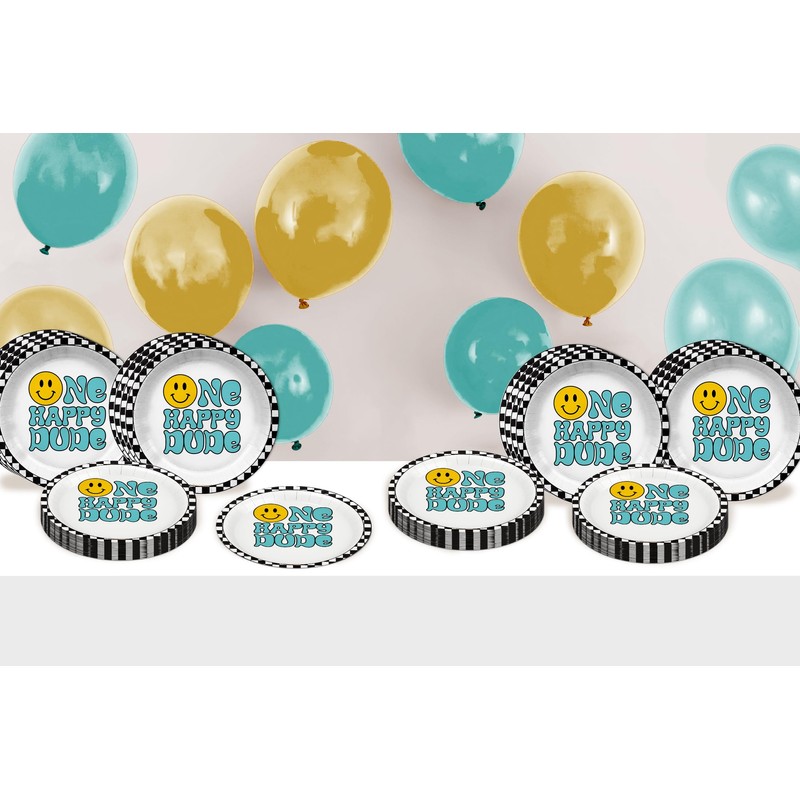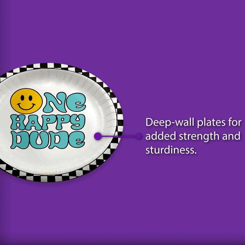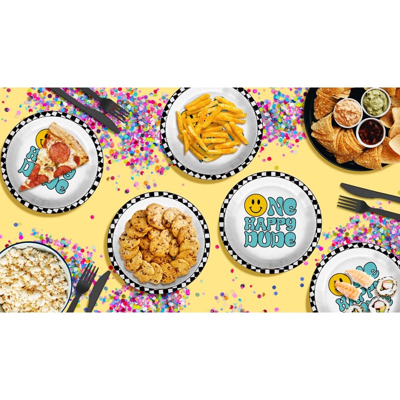 One Happy Dude Smiley Face 1st Birthday Party Supplies Large 9" Paper Plates in Bulk 32 Piece