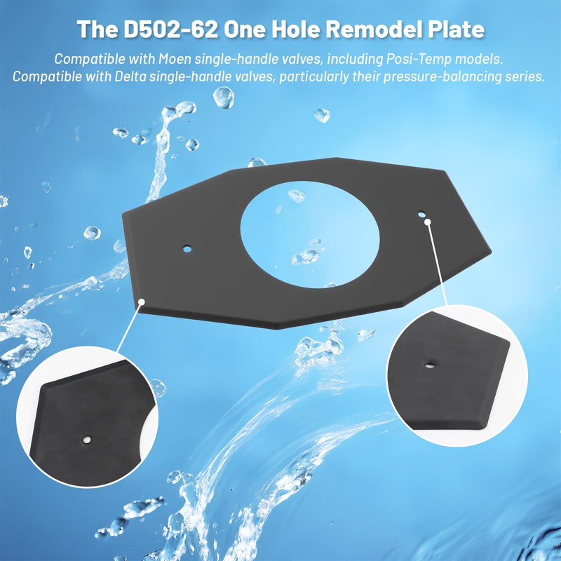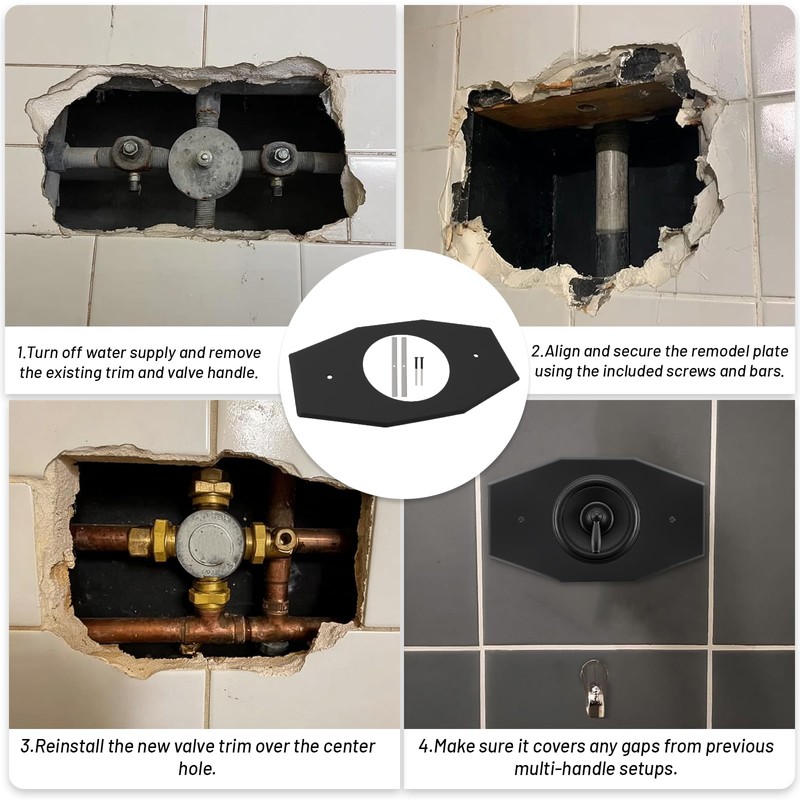 - 【One-hole Remodel Plate】Matte Black remodel plate is a top-rated, durable, and versatile option that blends One-Hole Remodel Plate Compatible with Moen and Delta Bathtub and Shower Valves, Renovation Shower Cover Plate Replace 2 Handle or 3 Handle Shower(1-Pack)with function. A one-hole remodel plate is a larger decorative plate, to cover the existing larger opening and any damage or discoloration around it. Provide a clean, finished look for the new single-hole valve trim.