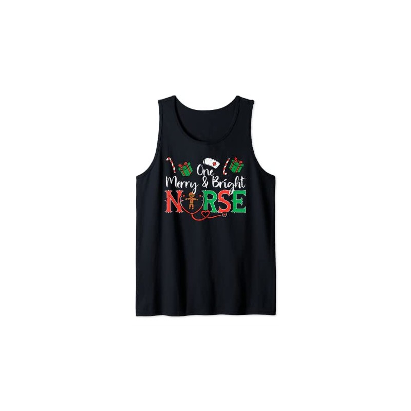 One Merry Bright Nurse Christmas Scrub Top Tank Top, black
