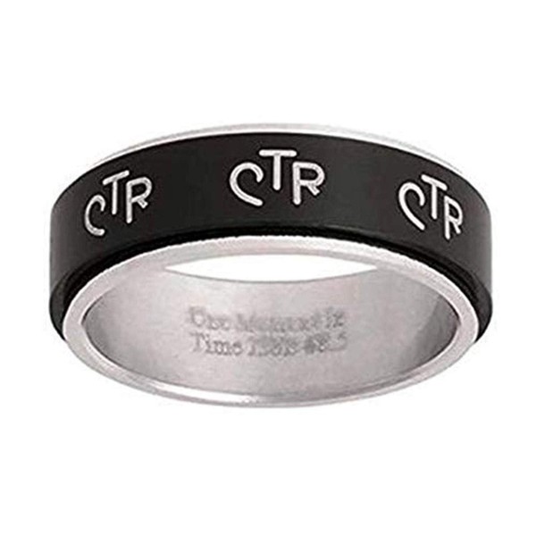 One Moment In Time J38B Size 10.5 Black Stainless Steel Spinner Ring Mormon LDS CTR