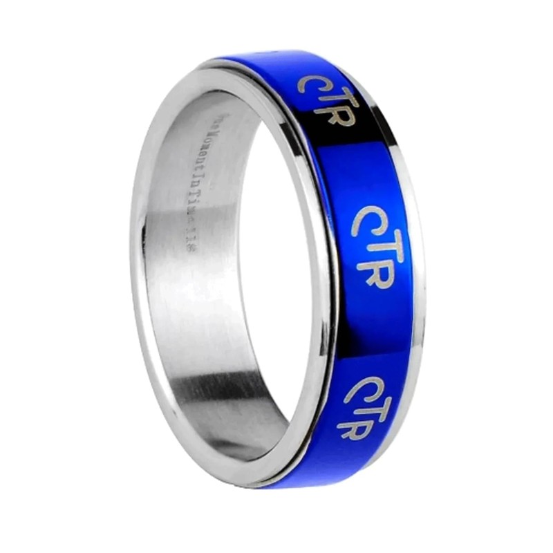 One Moment In Time J38C Size 8 Blue Spinner Ring Mormon LDS CTR