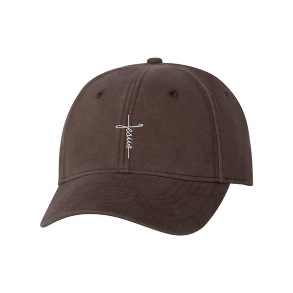 One Size Brown Baseball Jesus Cross Script Christian Embroidered Dad Hat Structured Cap