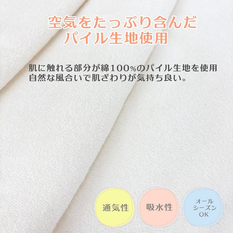 - Made with pile fabric that is rich in air, and has excellent breathability and gentle texture