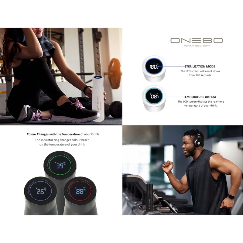 ONE80 REVOLUTION™: World's First Multi-Function, Self-Cleaning, Touchscreen Operated Stainless Steel Water Bottle with UV Water Purification, Double Wall Insulated, Rechargeable, Reusable & UVC.