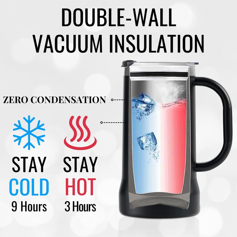 - No Sweat, Easy Grip - Sweat-free design prevents condensation, keeping surfaces dry. The exterior coating and handle offers a non-slip grip, great for both outdoor and indoor use.