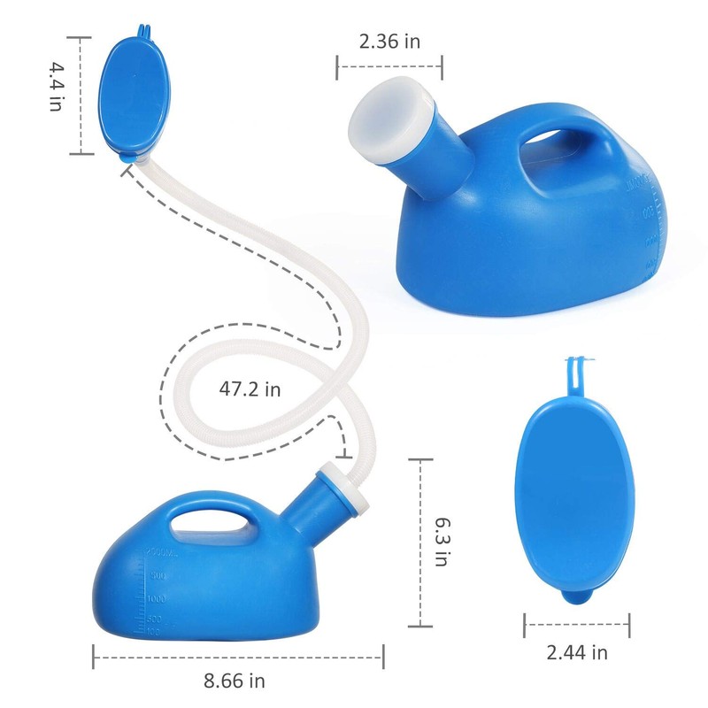 - 【Ideal for bedside, road trips】 The length of hose is 47.24", which is suitable for bedridden patients and elderly care. Patients can use the bedside urinal on bed or wheel chair or standing. And the car urinal can be cutted shorter to your desired length to use it in car, truck, tent. It comes in handy when traveling or anytime a restroom isn’t available.
