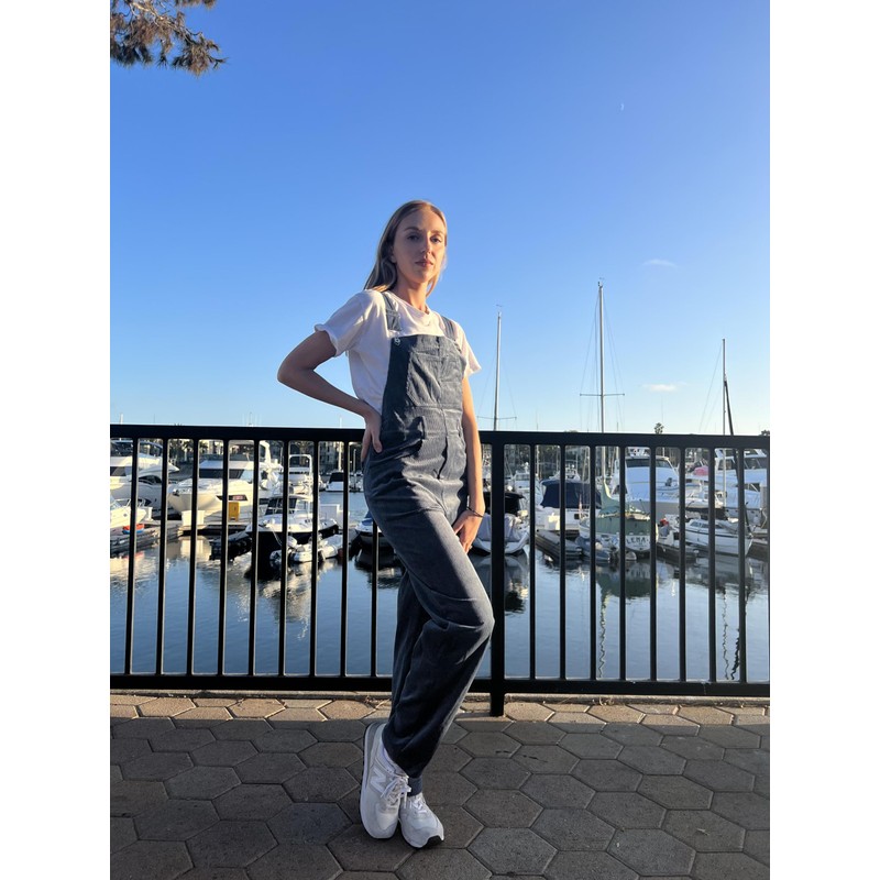 Overol de pana informal con bolsillos y tirantes ajustables para mujer