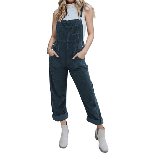 Onedreamer - Overol de pana para mujer, con tirantes ajustables, con tirantes ajustables, con pana y bolsillos, marino, L