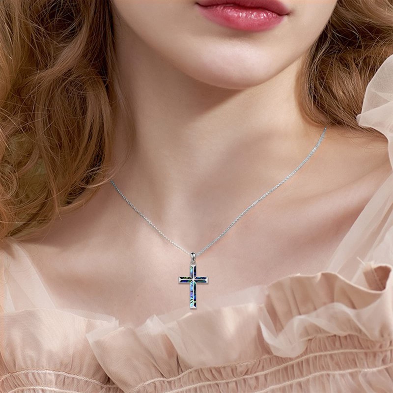 ONEFINITY Religious Cross Pendant Necklace 925 Sterling Silver Abalone Shell Cross Pendant Gifts for Women