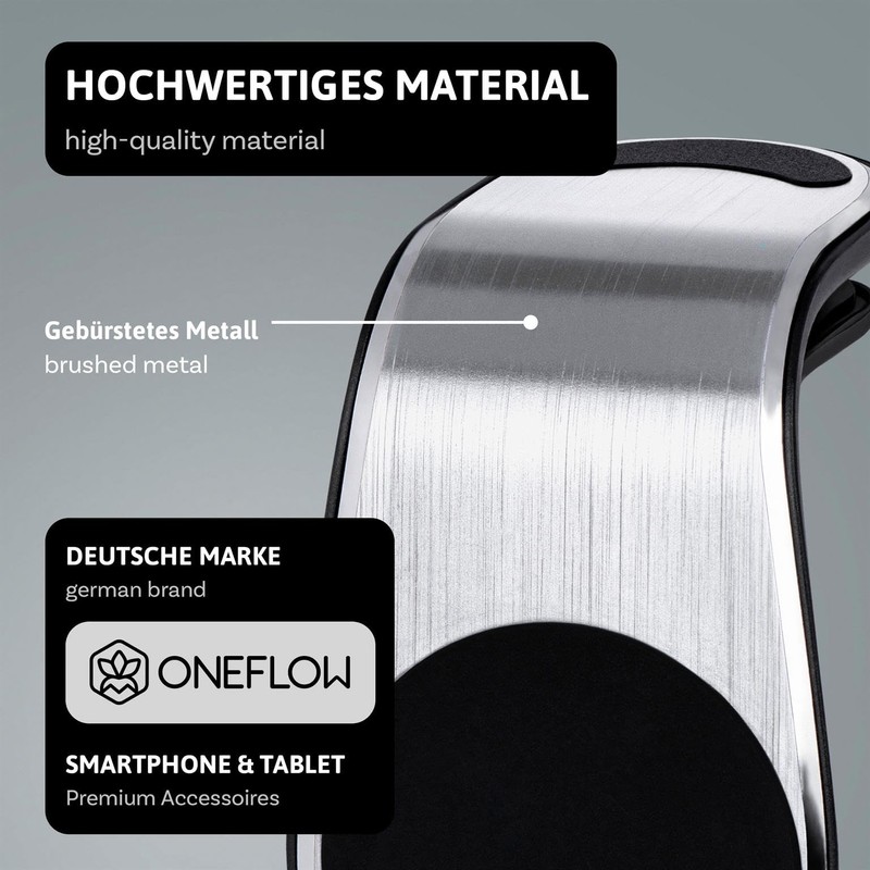 - The mounting clip of the car mount can be individually adjusted to your own ventilation grille and in any case sits immediately and above all smooth