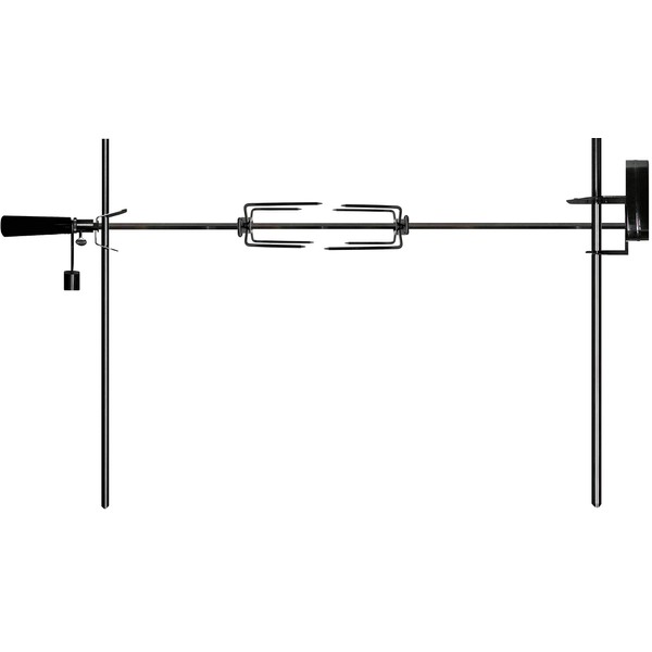 - The Perfect Open Fire Solution For Portable Lighter Duty Rotisserie Cooking When Electricity Is Not Available. Great For: Chicken, Turkey, Ham, Brisket, And Beyond! Please Note This Product Should Be Stored Indoors And Away From Weather When Not In Use To Extend Product Life & Maintain Products Chrome Finish And Steel Construction Integrity.