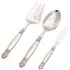 - Set includes large serving fork, pierced serving spoon, and butter knife