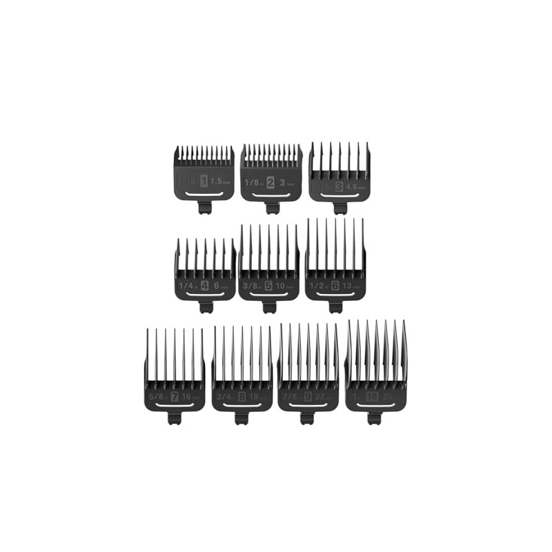 Oneisall 10Pcs Attachment Guide Comb Guards Dog Clippers RFC-676#1-#8, 1.5mm/3/mm/4.5mm/6mm/10mm/13mm/16mm/19mm/22mm/25mm Cut Length, Black