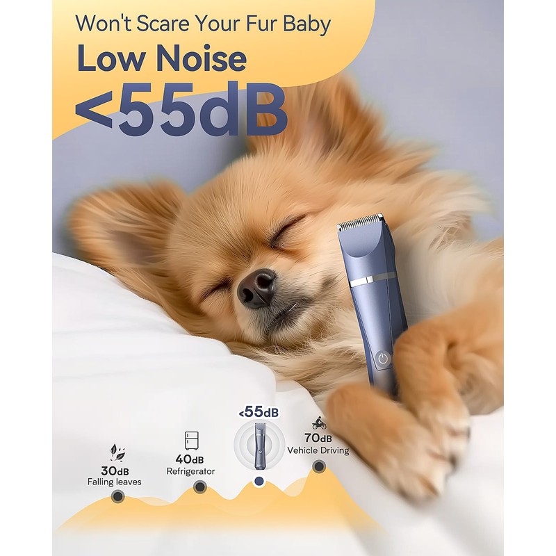 - Low Noise & Vibration : This dog paw trimmer equipped with motor and whisper-quiet technology, produce high speed and less vibration .The noise is about 55db when trimming, help that your pet feels comfortable throughout the grooming process, won't scare your furry baby