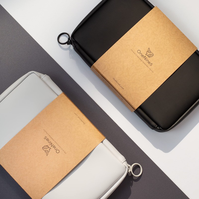 OneNine5 Eco-Friendly Essentials Pouch, Miho Black. Organiser & Bag for Makeup, Cosmetics, Tech, Wires, Valuables & Everyday Accessories. Vegan Leather & 100% Recycled Plastic Lining.