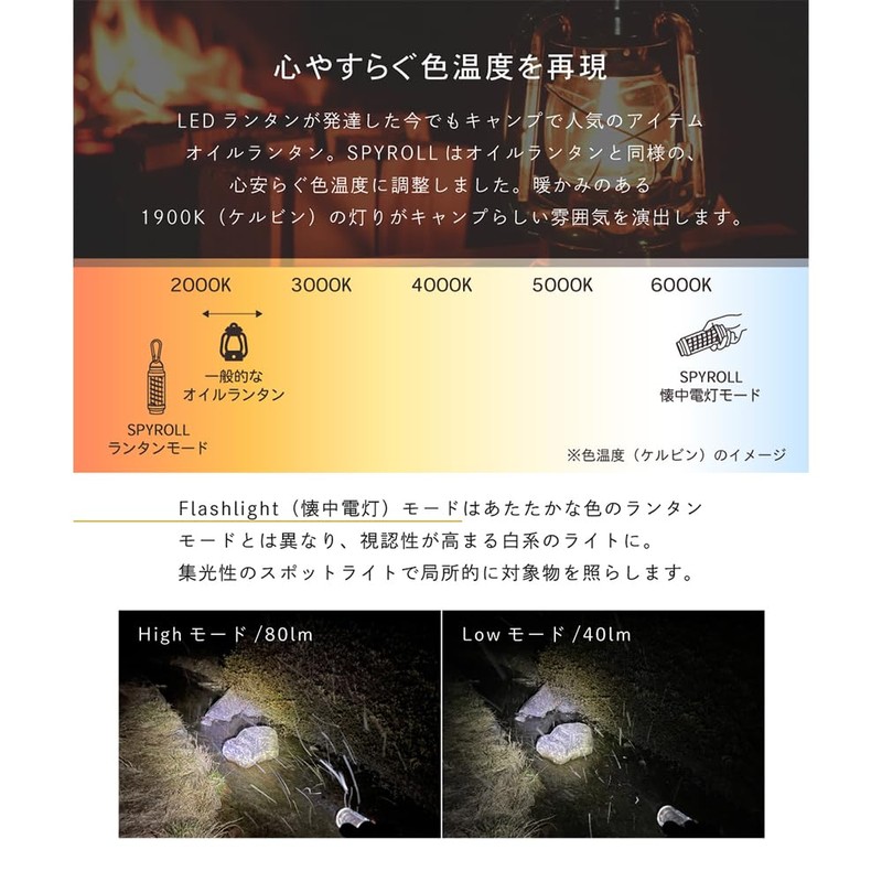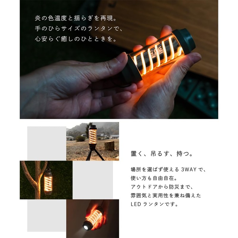 - Reproduces the healing of the oil lantern: Lightweight 2.8 oz (76 g), and is easy to carry. You can switch between "Breath" mode to replicate the flame flickering, "Lantern mode" which is suitable for lighting or "Flashlight mode" that can be used as a flashlight