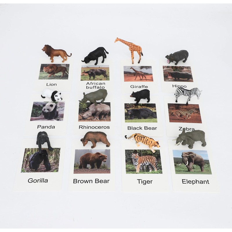 - Emulational detail design: animal figures are made by hand painted with high realistically detailed appearance, cute face and childish eyes, with vivid flash cards, a good toys for kids cognition