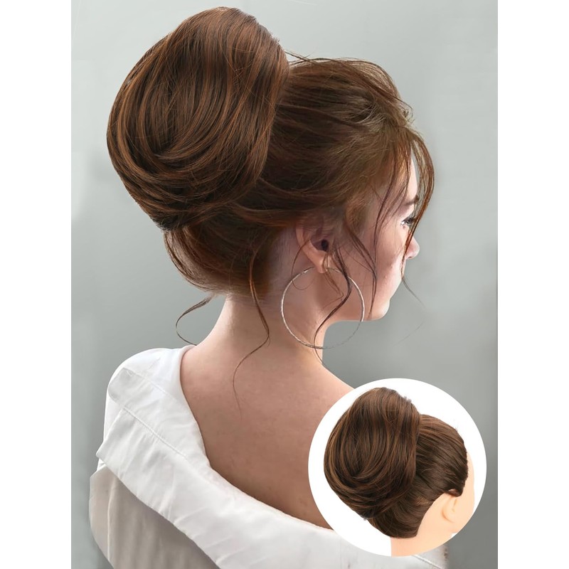 - [Ideal Bun Ponytail Extension]This hair bun is specially designed with fluffy straight hair and subtle curls, making it perfect for creating casual and refreshing hair buns or short ponytail styles that seamlessly blend with your own hair's texture.