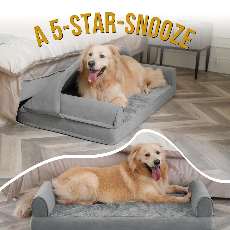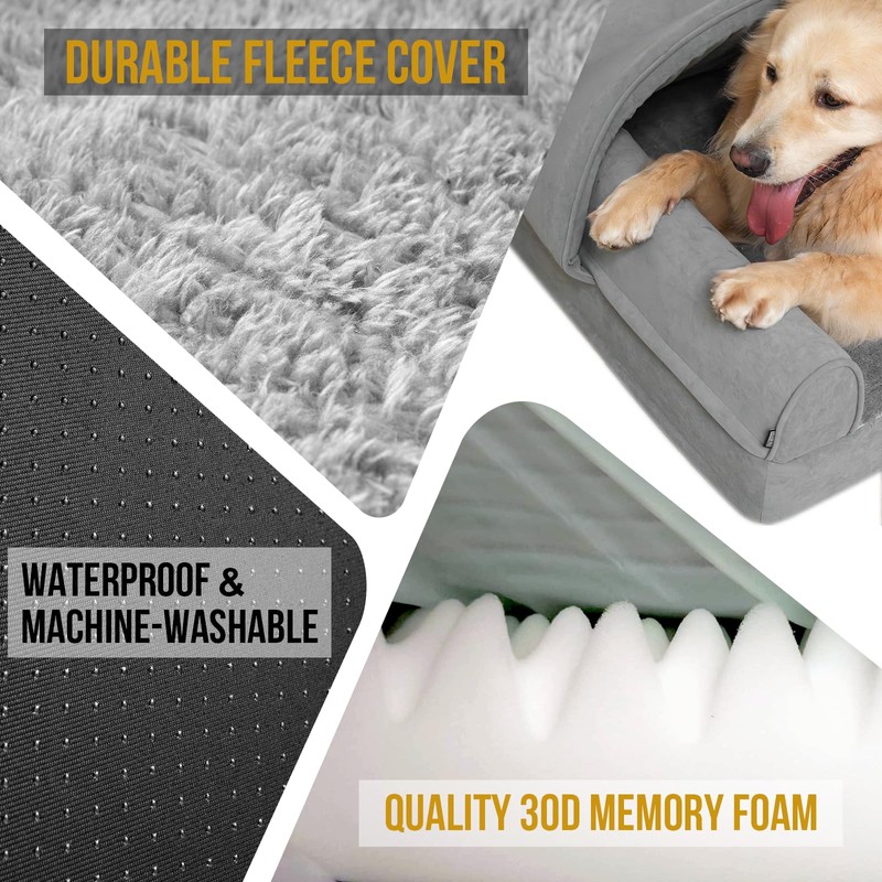 OneTigris Dog Bed Medium Size Dog with Cover, Memory Foam with Pillows, Dog Bed with Half Canopy Soft Cushioned Sofa, Non-Slip and Egg-Crate Foam, Washable Removable Cover (Medium)