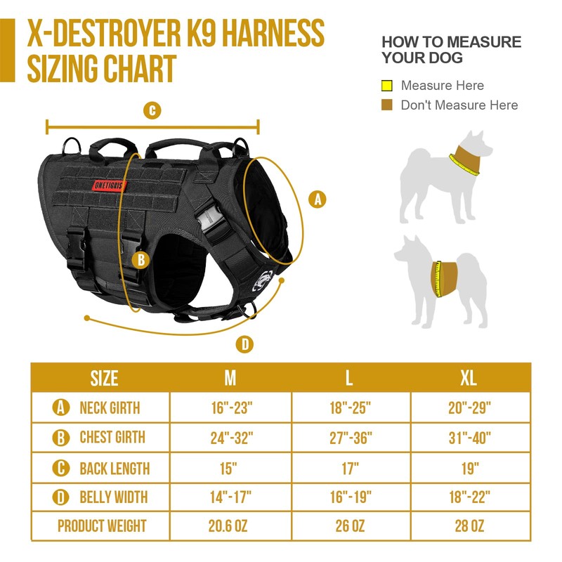 - QUALITY AFTER-SALE GUARANTEE: OneTigris large tactical dog harness(X DESTROYER Harness) have 1 year warranty. If you are not satisfied with dog vest harnesses, feel free to reach out and we will reply in 24 hours